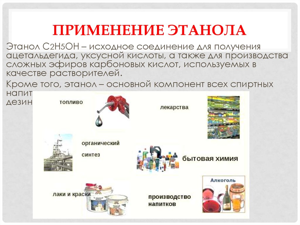 41. ПРИМЕНЕНИЕ ЭТАНОЛА