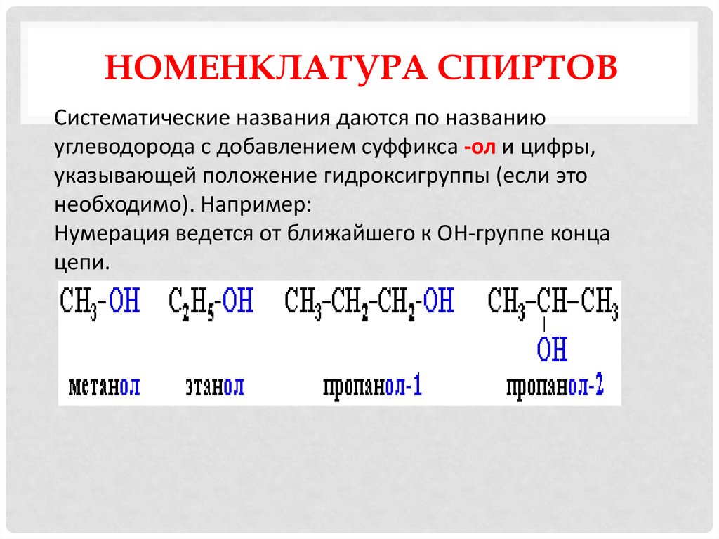 НОМЕНКЛАТУРА СПИРТОВСистематические названия даются по названию
