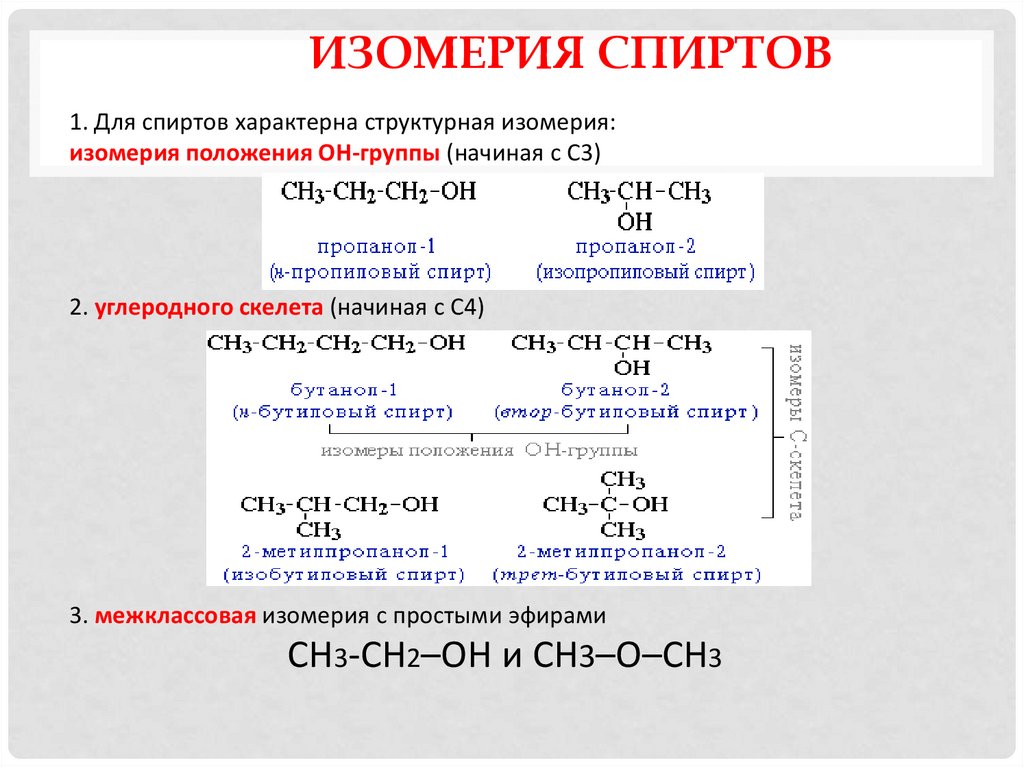 ИЗОМЕРИЯ СПИРТОВ1. Для спиртов характерна структурная изомерия: