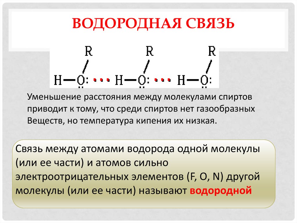 ВОДОРОДНАЯ СВЯЗЬУменьшение расстояния между молекулами спиртов