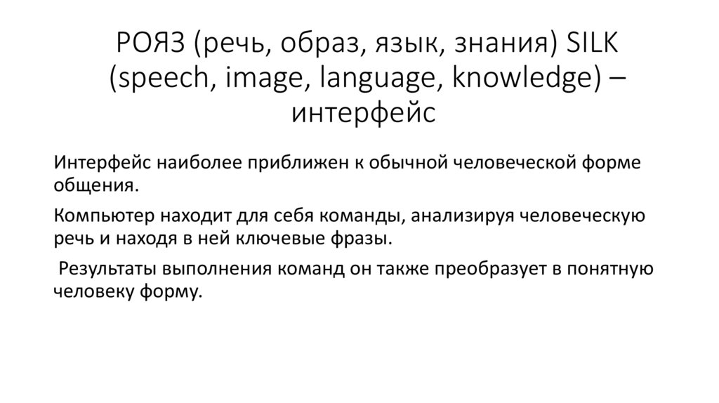 РОЯЗ (речь, образ, язык, знания) SILK(speech, image, language, knowledge) –