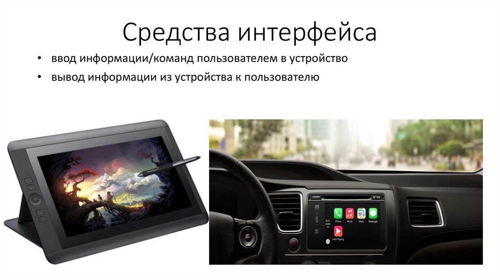 Средства интерфейса• ввод информации/команд пользователем в устройство