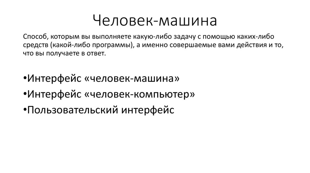 Человек-машинаСпособ, которым вы выполняете какую-либо задачу с помощью каких-либо