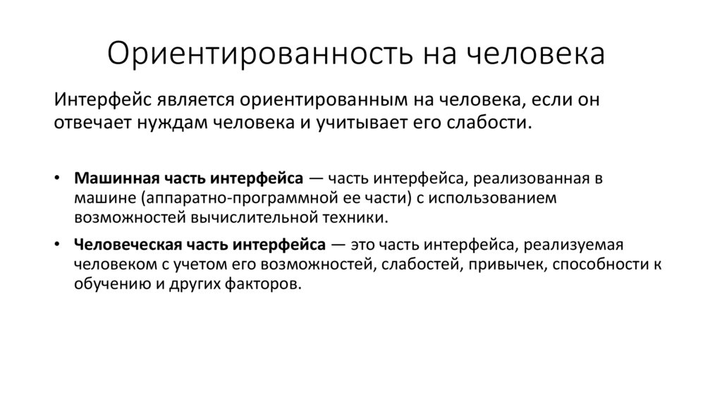 Ориентированность на человекаИнтерфейс является ориентированным на человека, если он