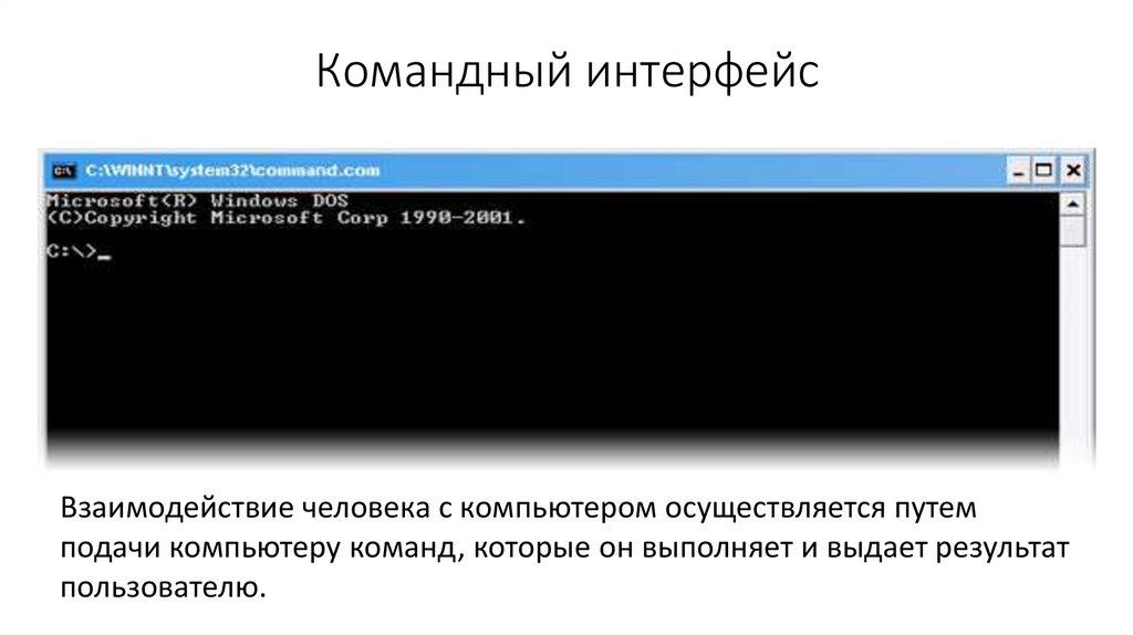 Командный интерфейсВзаимодействие человека с компьютером осуществляется путем