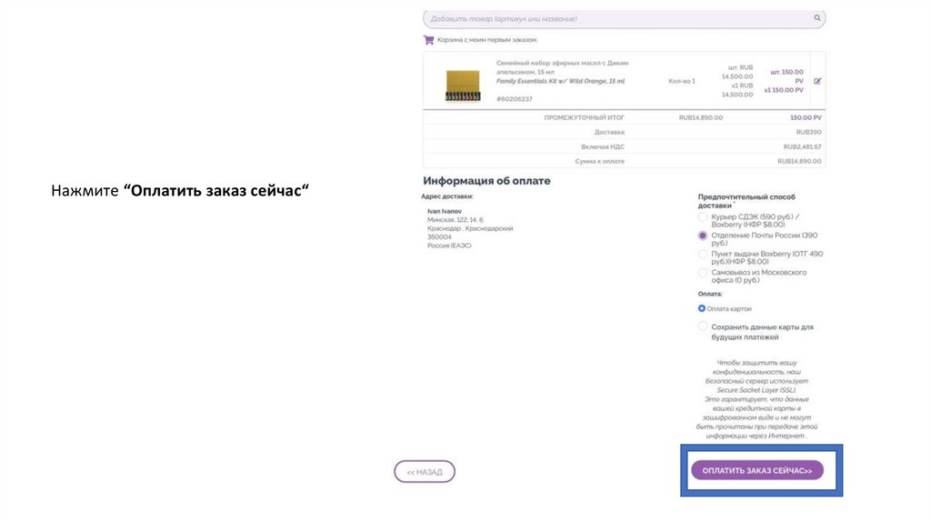Нажмите “Оплатить заказ сейчас“13.