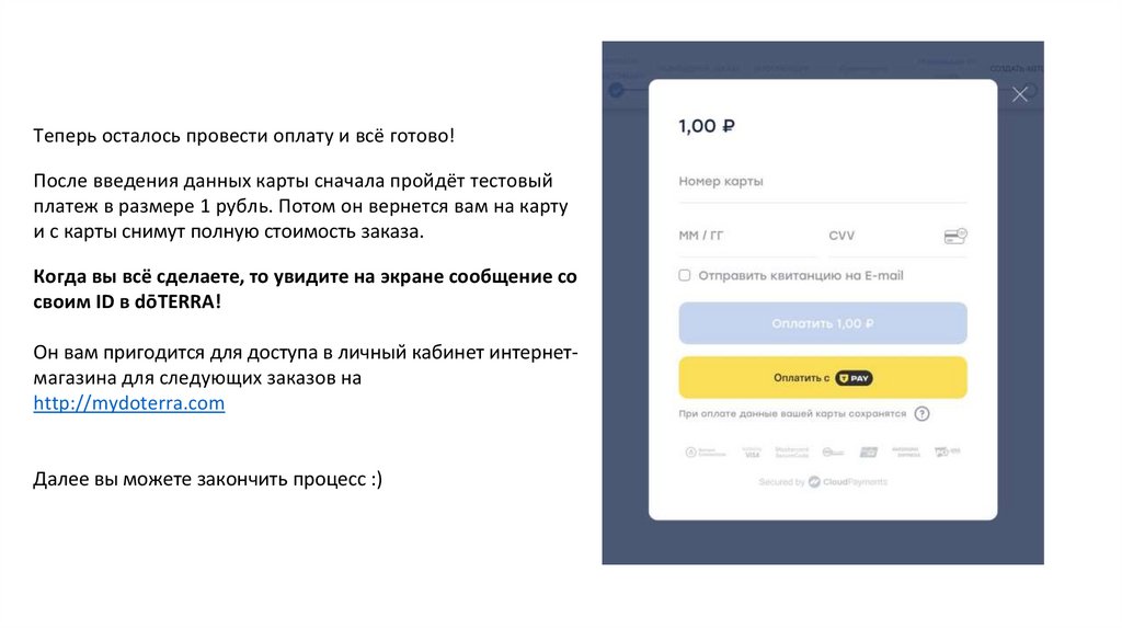 Теперь осталось провести оплату и всё готово!После введения данных карты сначала пройдёт тестовый