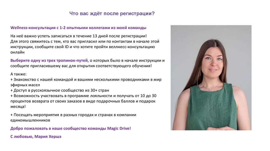 Что вас ждёт после регистрации?Wellness-консультация с 1-2 опытными коллегами из моей команды