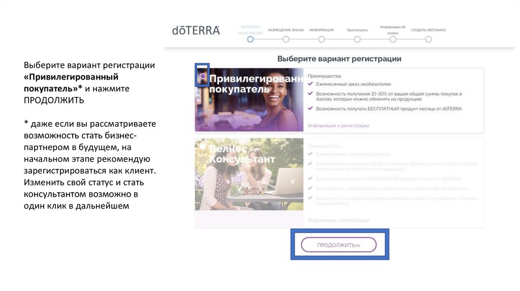 Выберите вариант регистрации«Привилегированный