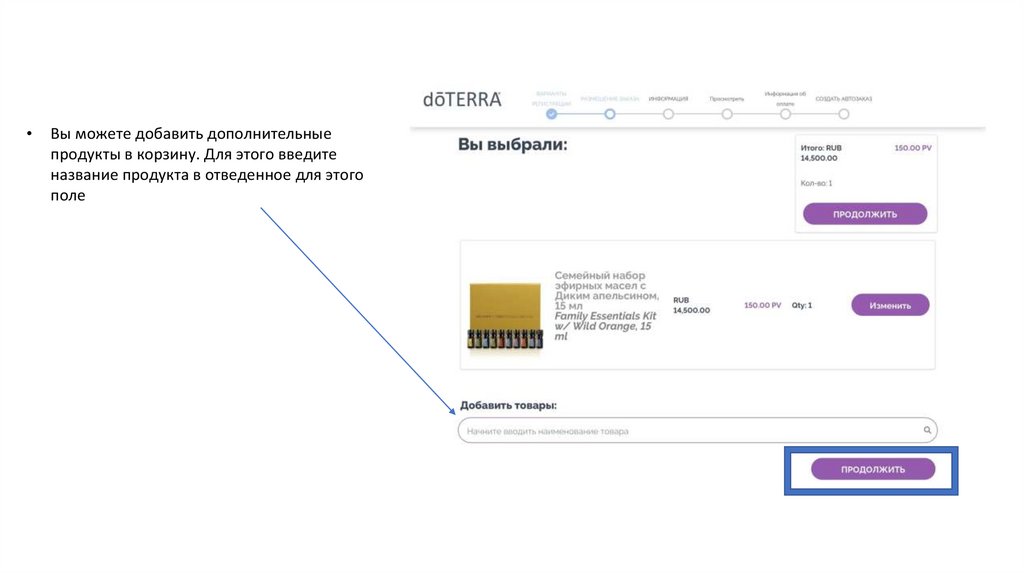 продукты в корзину. Для этого введите