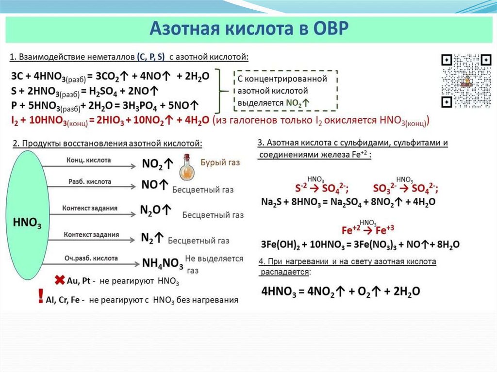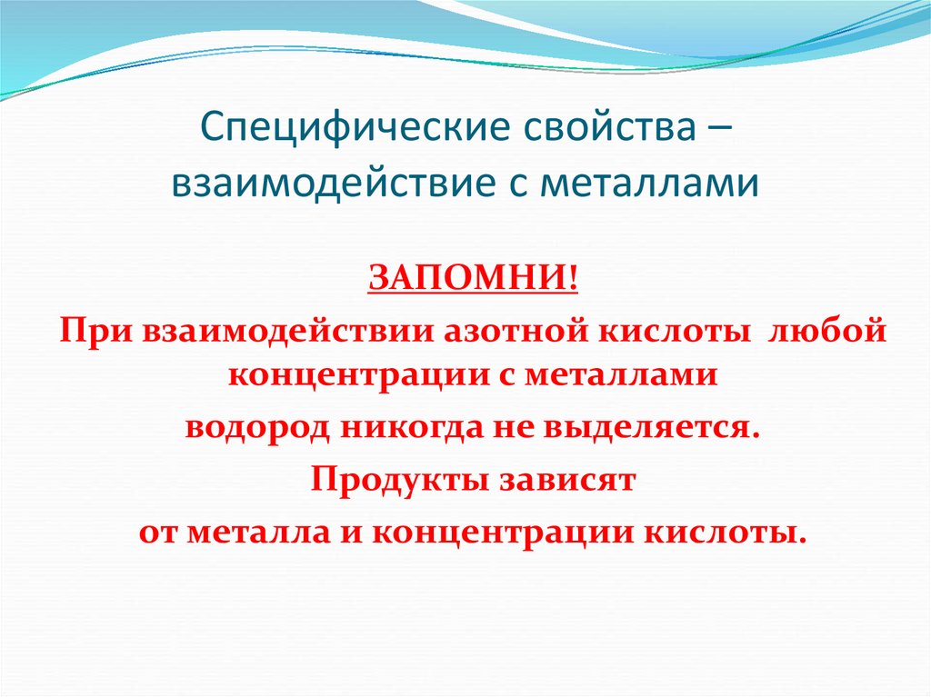 ЗАПОМНИ!При взаимодействии азотной кислоты любой