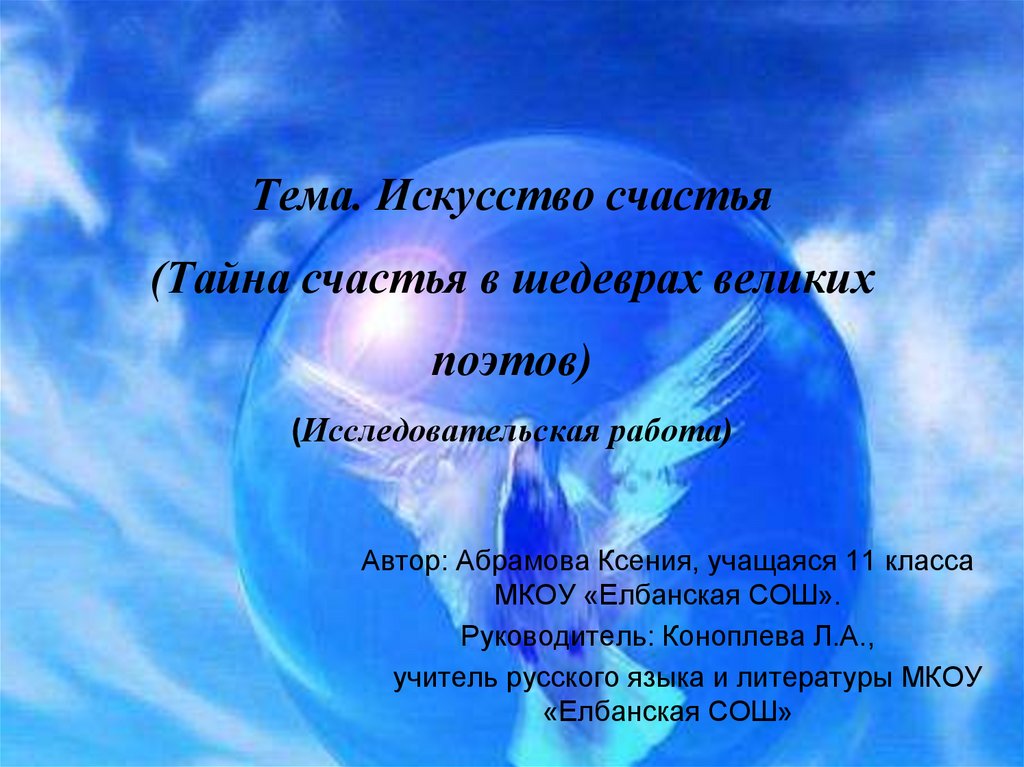 Тема. Искусство счастья(Тайна счастья в шедеврах великих