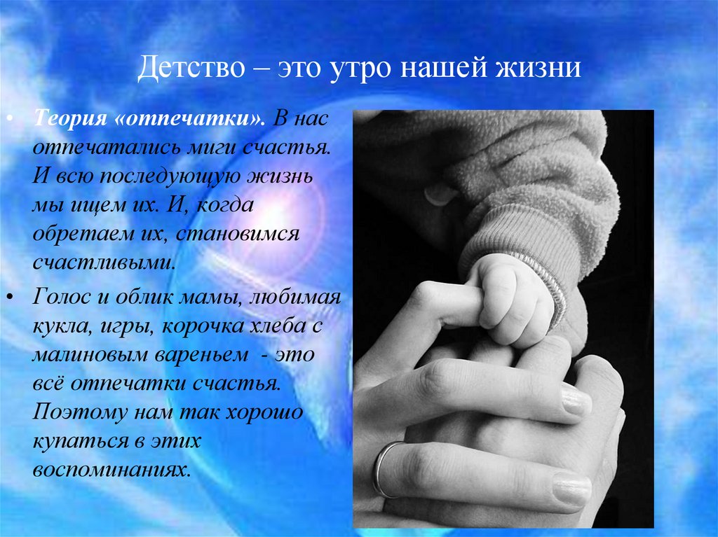 Детство – это утро нашей жизни• Теория «отпечатки». В нас