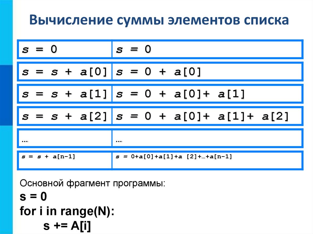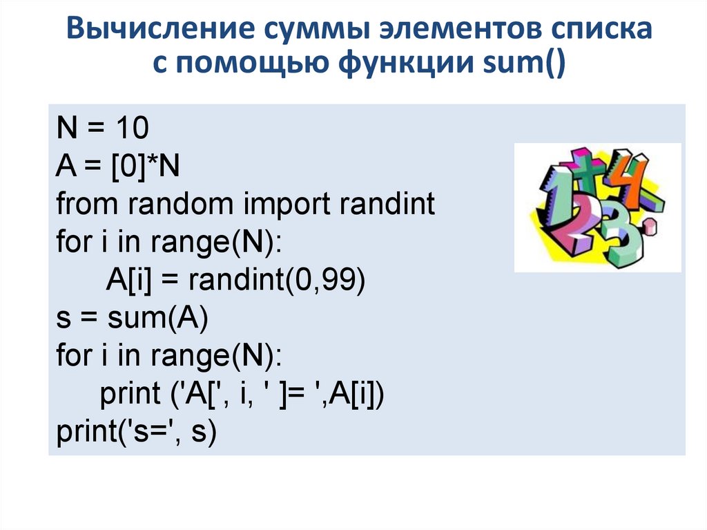 Вычисление суммы элементовсписка