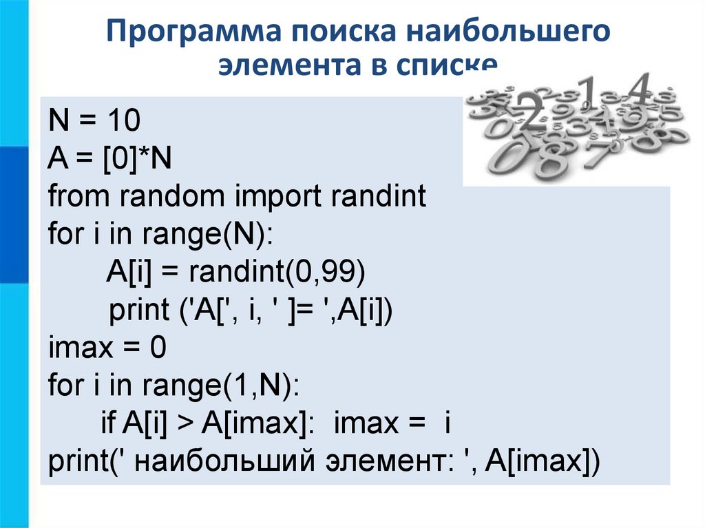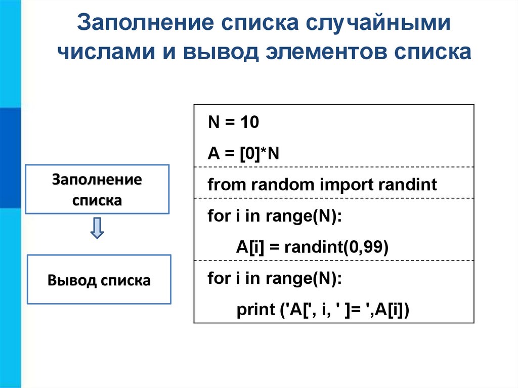 A[i] = randint(0,99) #присваивание очередному