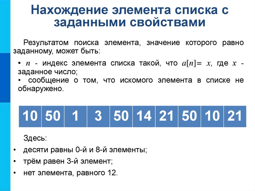 Поиск элементов списка с заданными свойствами
