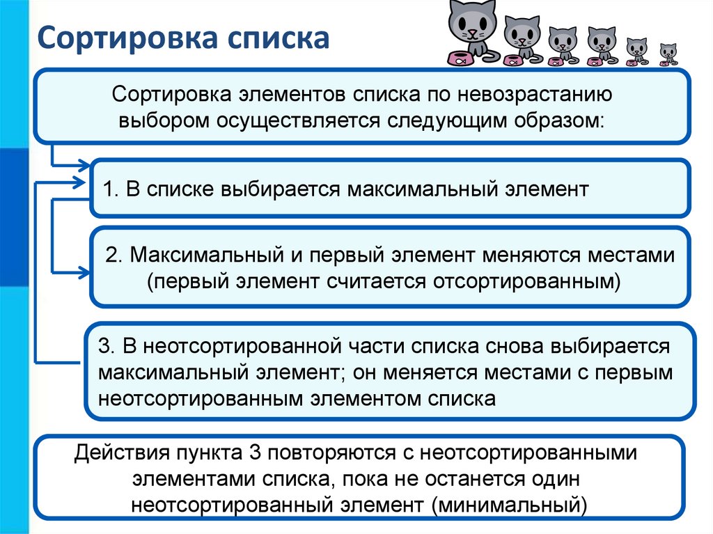 - сортировка списка.