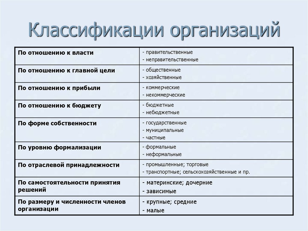 Классифицируйте организации по отношению к власти, по отношению к прибыли, по
