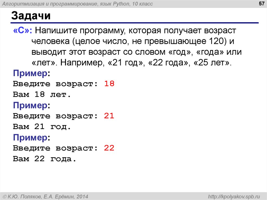 Алгоритмизация и программирование, язык Python, 10 класс127