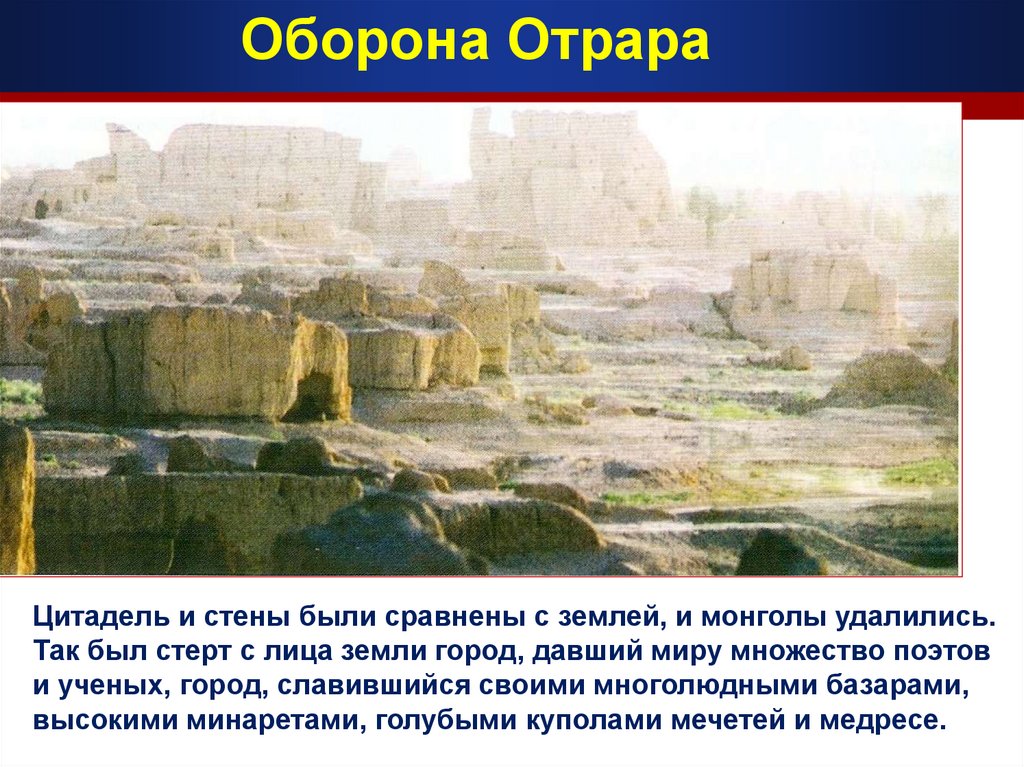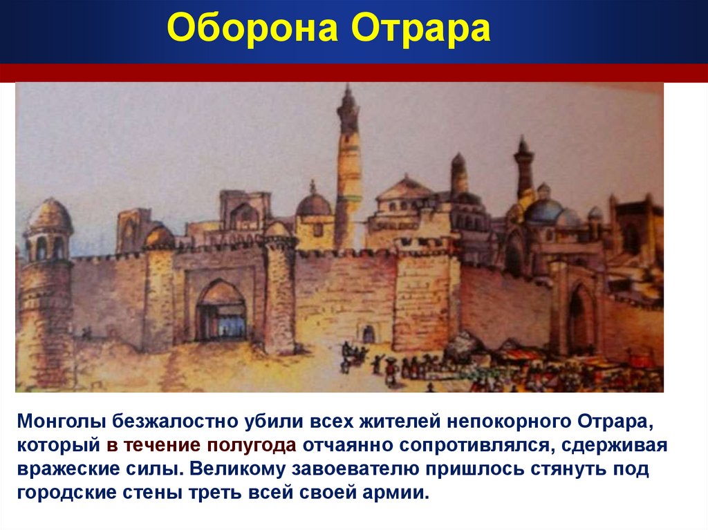 Оборона ОтрараЦитадель и стены были сравнены с землей, и монголы удалились.