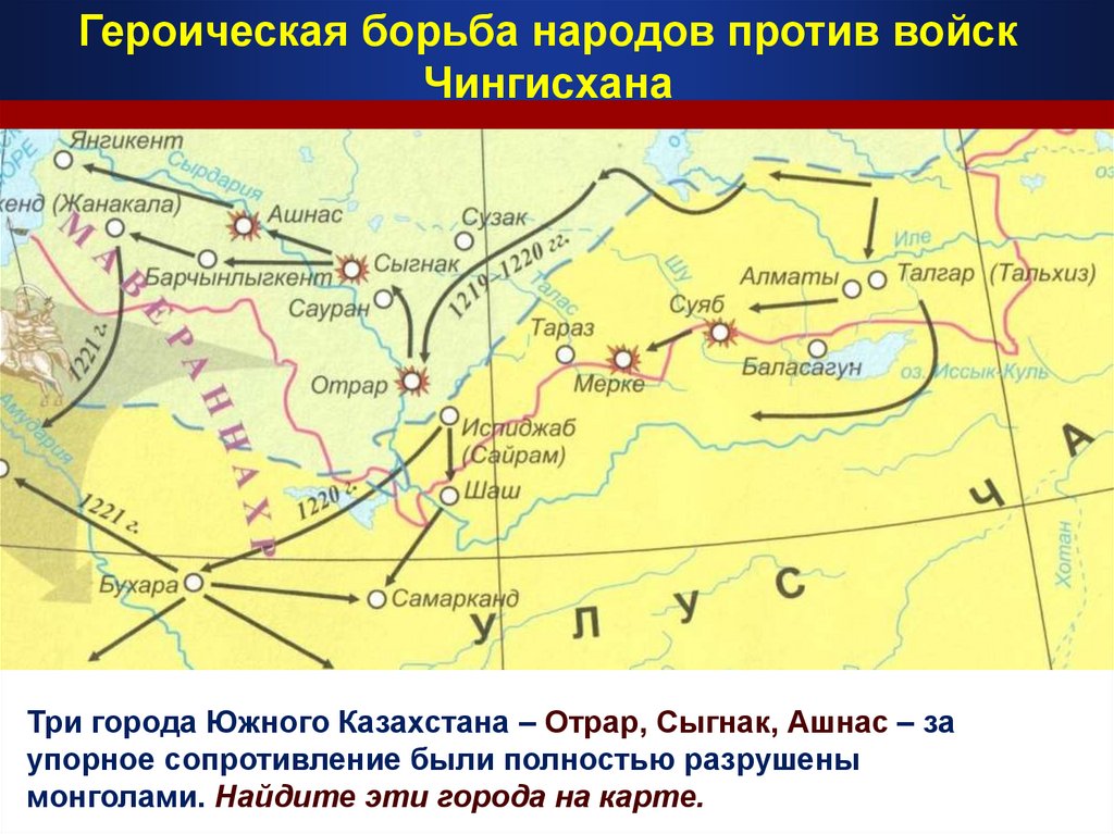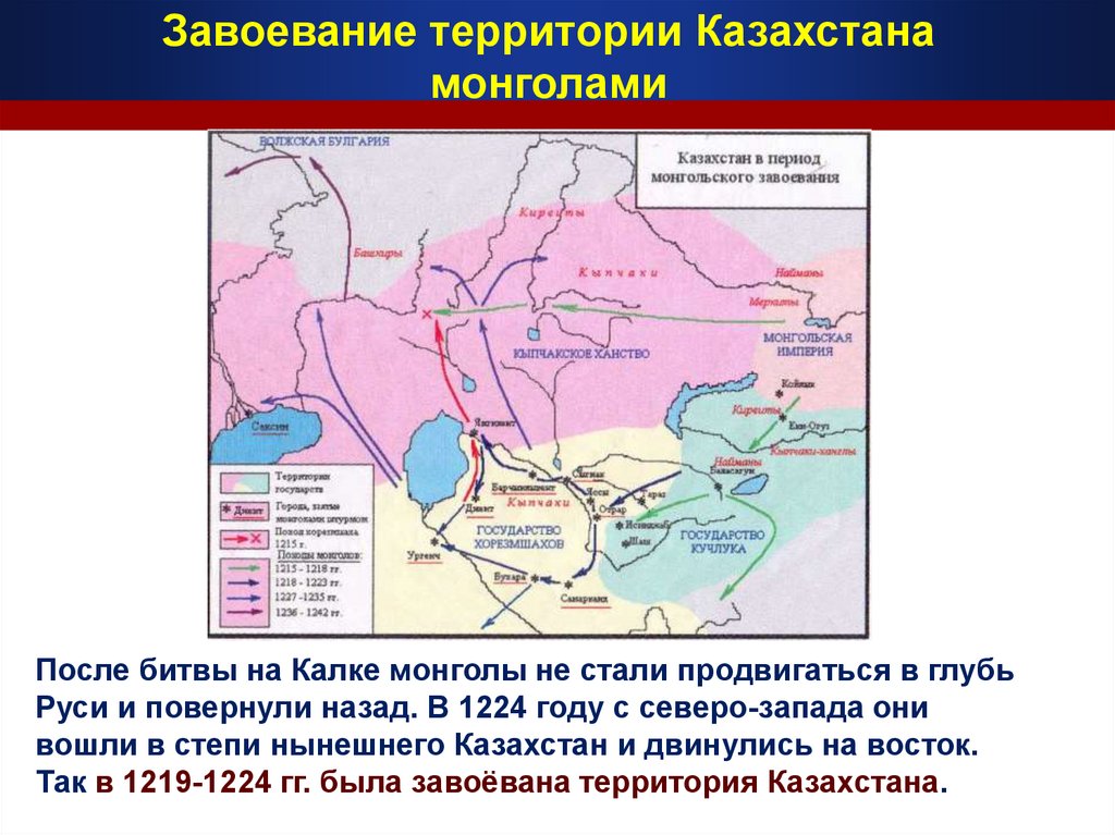 Так в 1219-1224 гг. была завоёвана территория Казахстана.