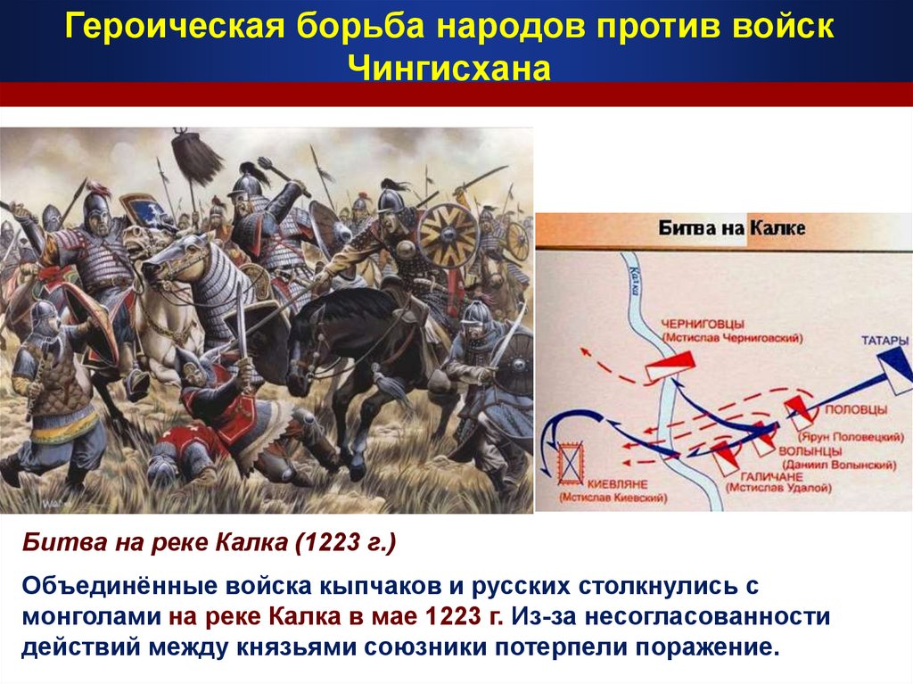 монголами на реке Калка в мае 1223 г. Из-за несогласованности