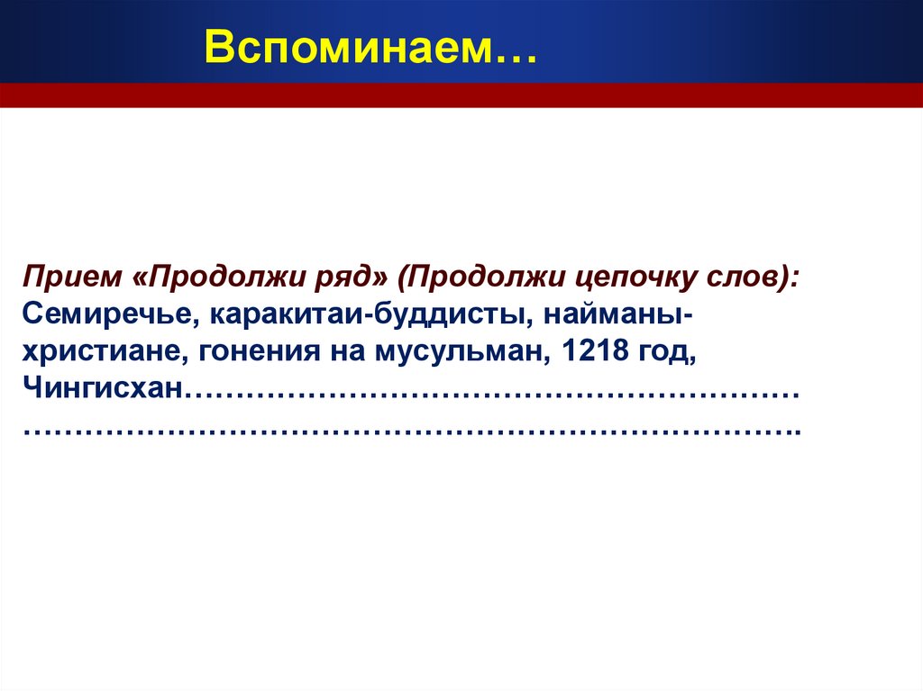 Вспоминаем…Прием «Продолжи ряд» (Продолжи цепочку слов):