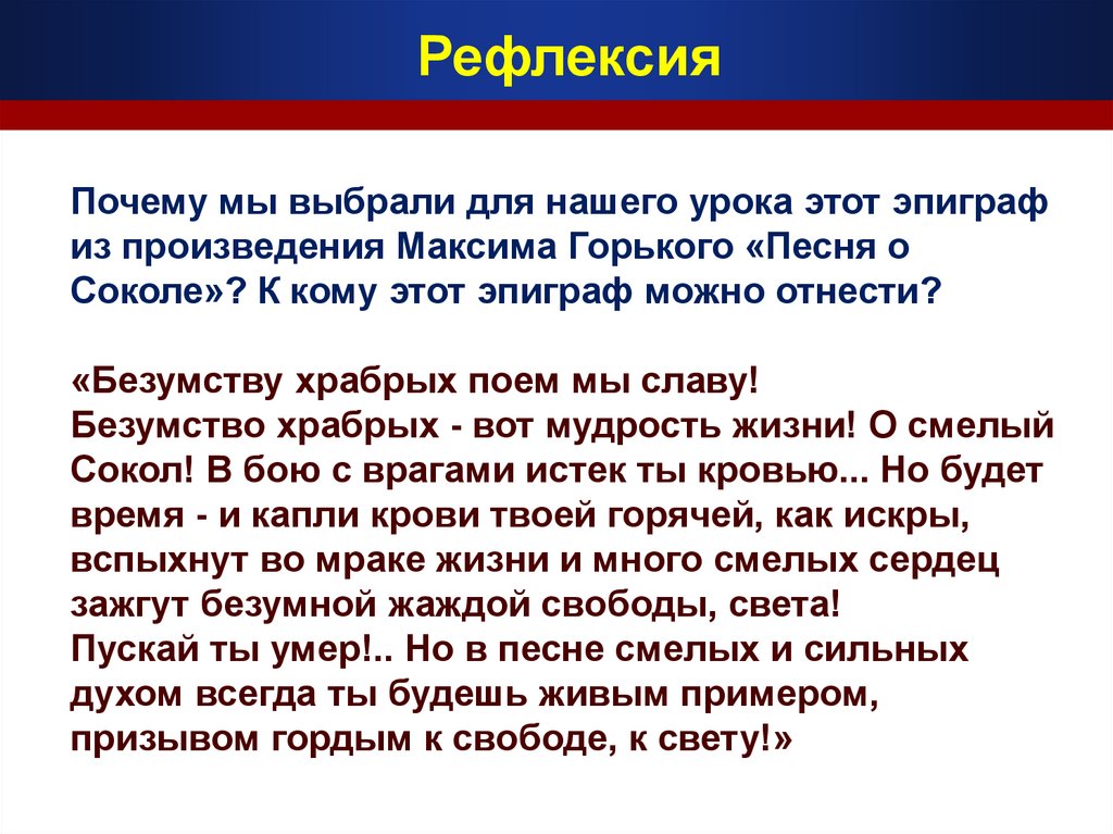 РефлексияПочему мы выбрали для нашего урока этот эпиграф