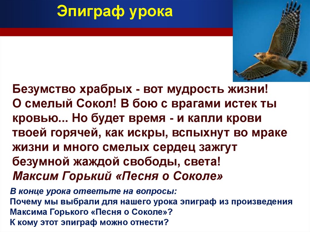 Эпиграф урокаБезумство храбрых - вот мудрость жизни!