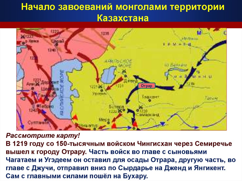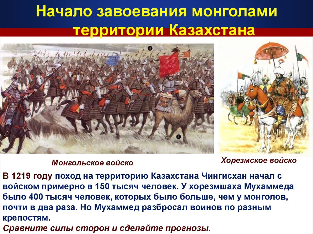 В 1219 году поход на территорию Казахстана Чингисхан начал с
