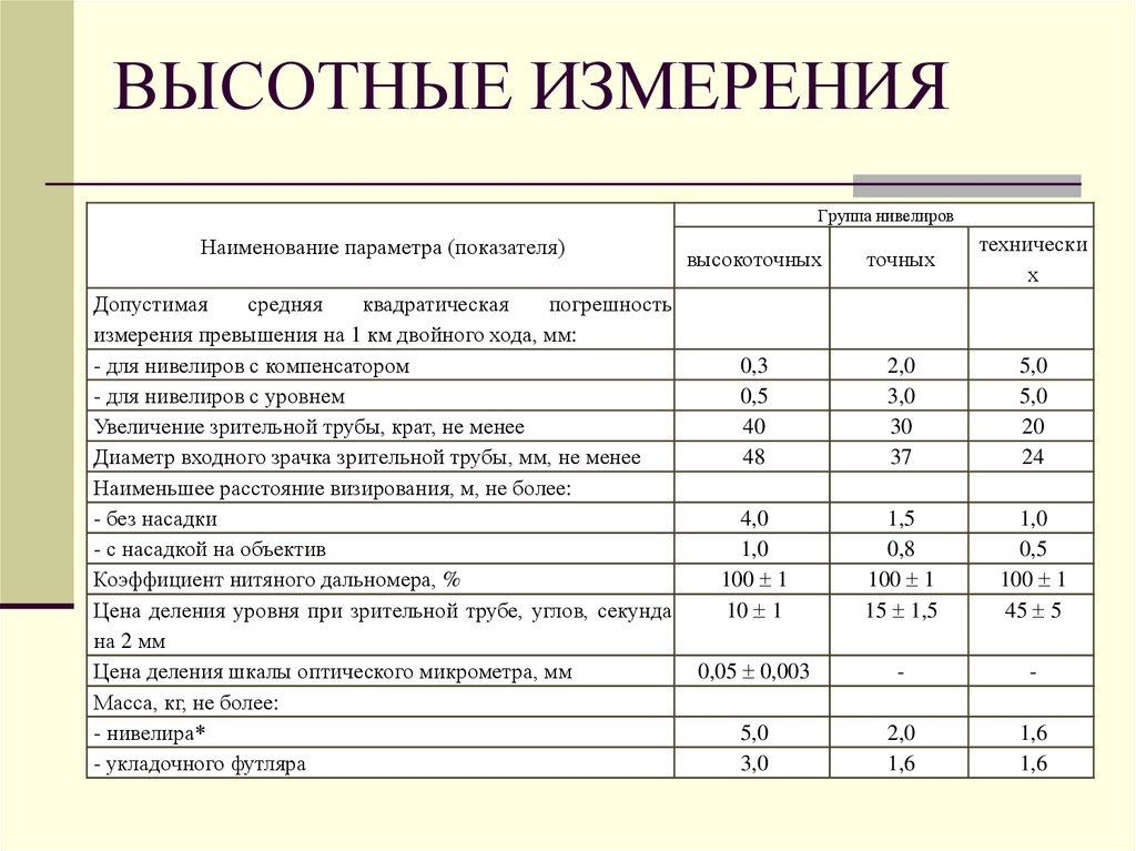 2. приборы для измерения превышений (высот);