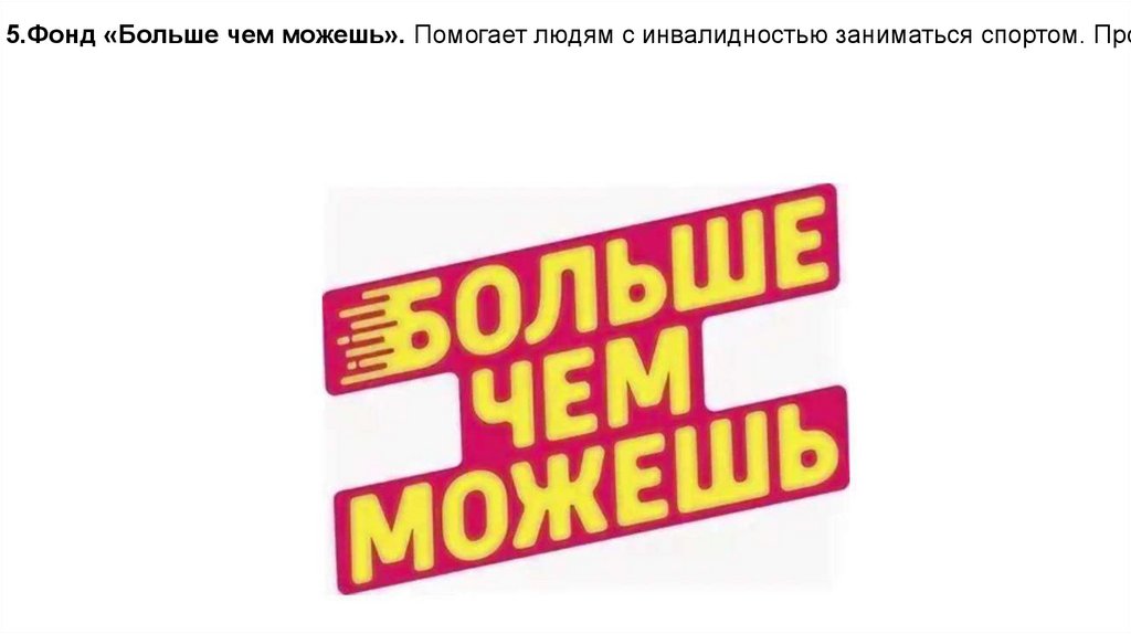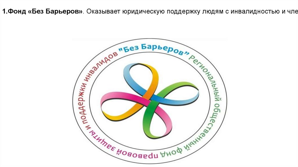 1.Фонд «Без Барьеров». Оказывает юридическую поддержку людям с инвалидностью и чле5.
