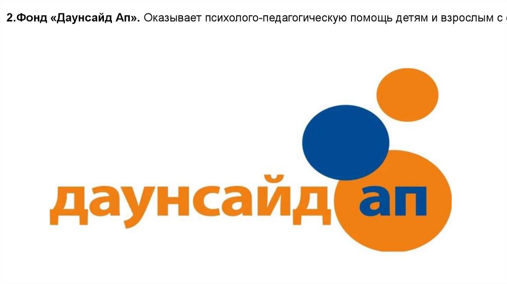 2.Фонд «Даунсайд Ап». Оказывает психолого-педагогическую помощь детям и взрослым с с8.