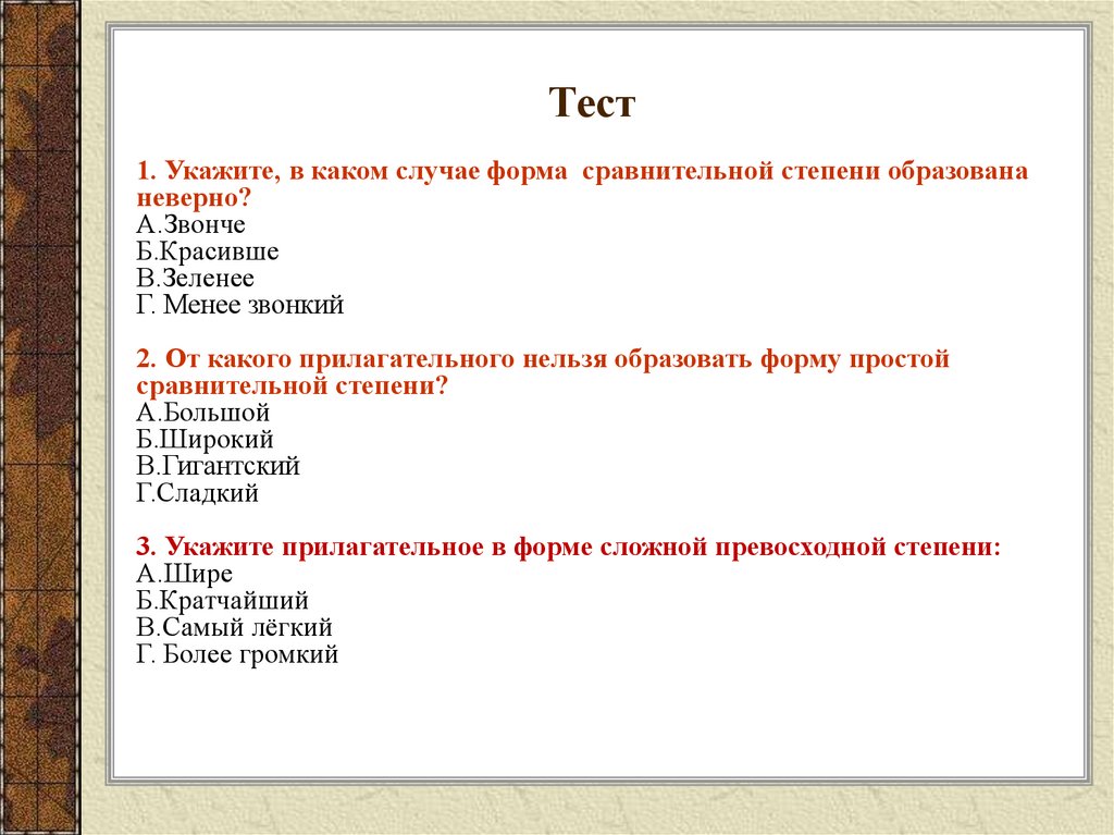 1. Укажите, в каком случае форма сравнительной степени образовананеверно?
