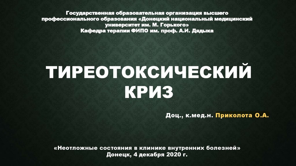 Тиреотоксический криз. ОпределениеТиреотоксический