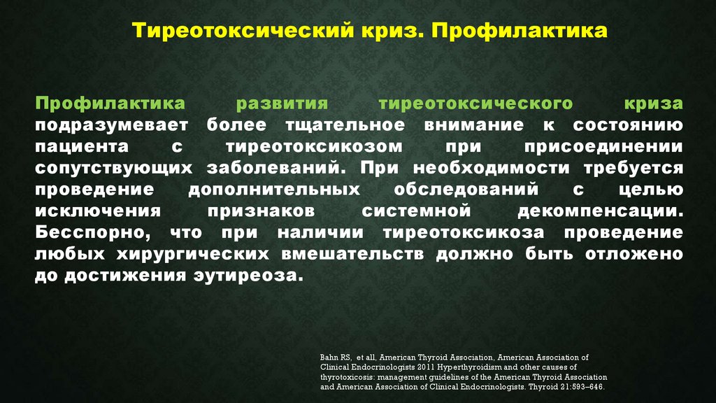 Тиреотоксический криз. ПрофилактикаПрофилактика