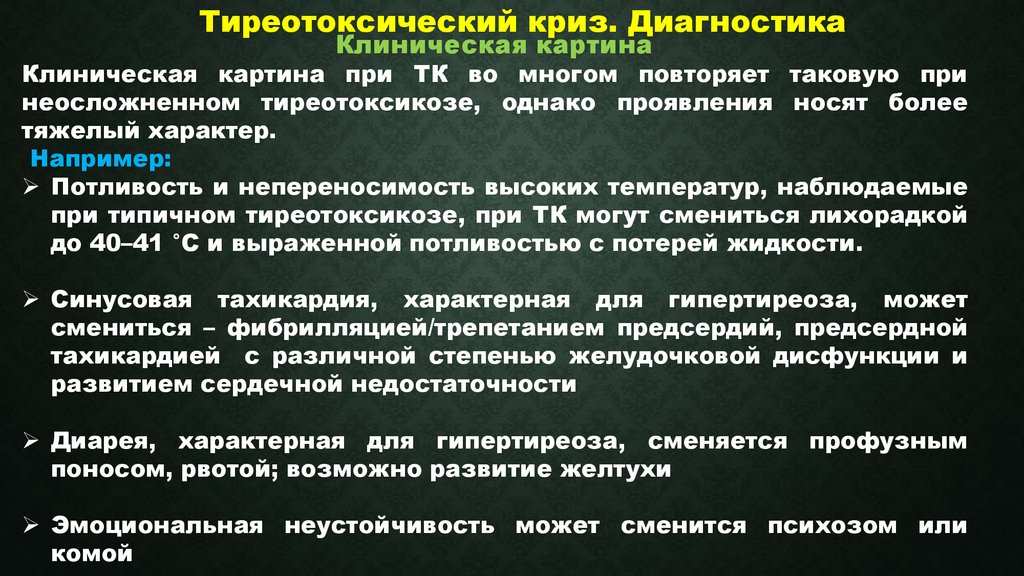 Тиреотоксический криз. ДиагностикаКлиническая картина
