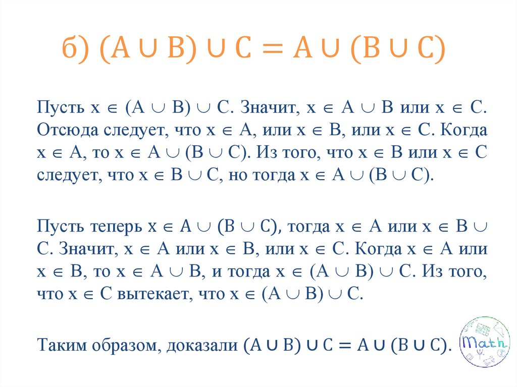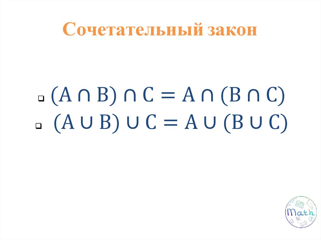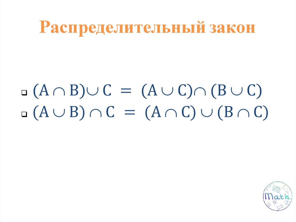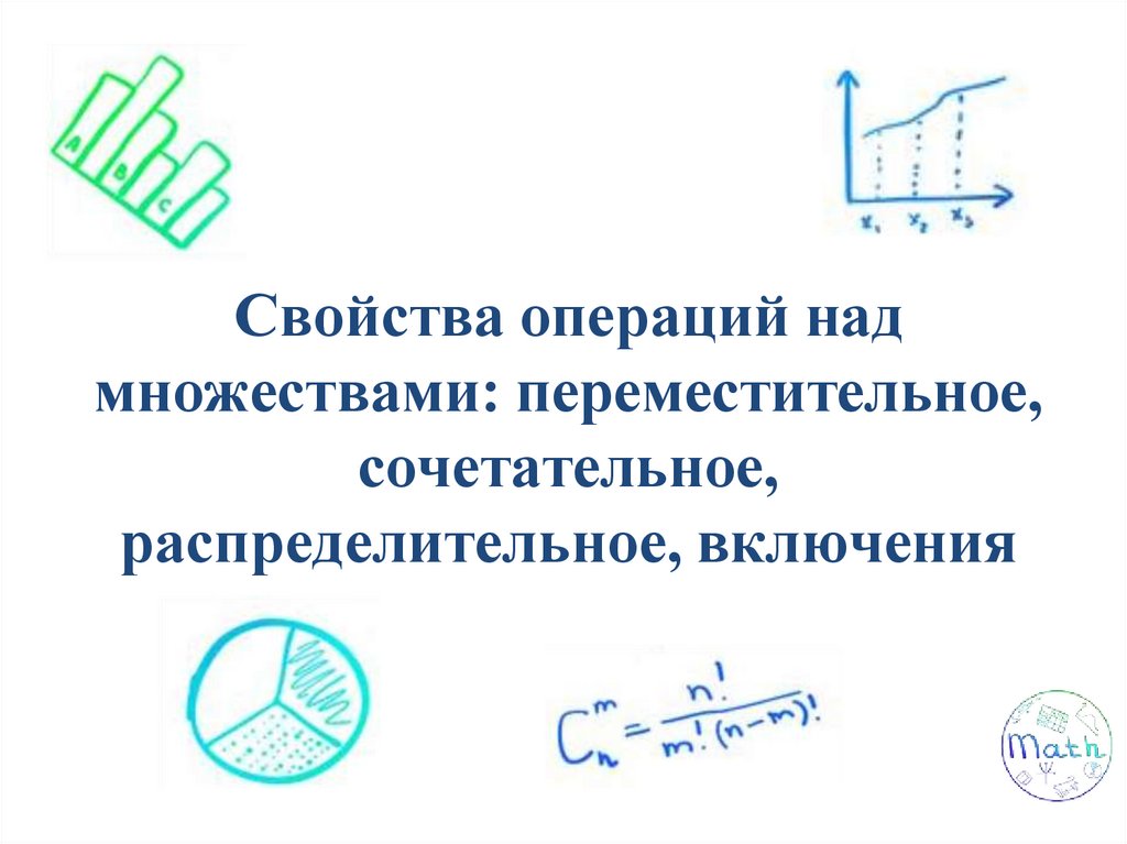 Свойства операций над множествами: переместительное, сочетательное, распределительное, включения