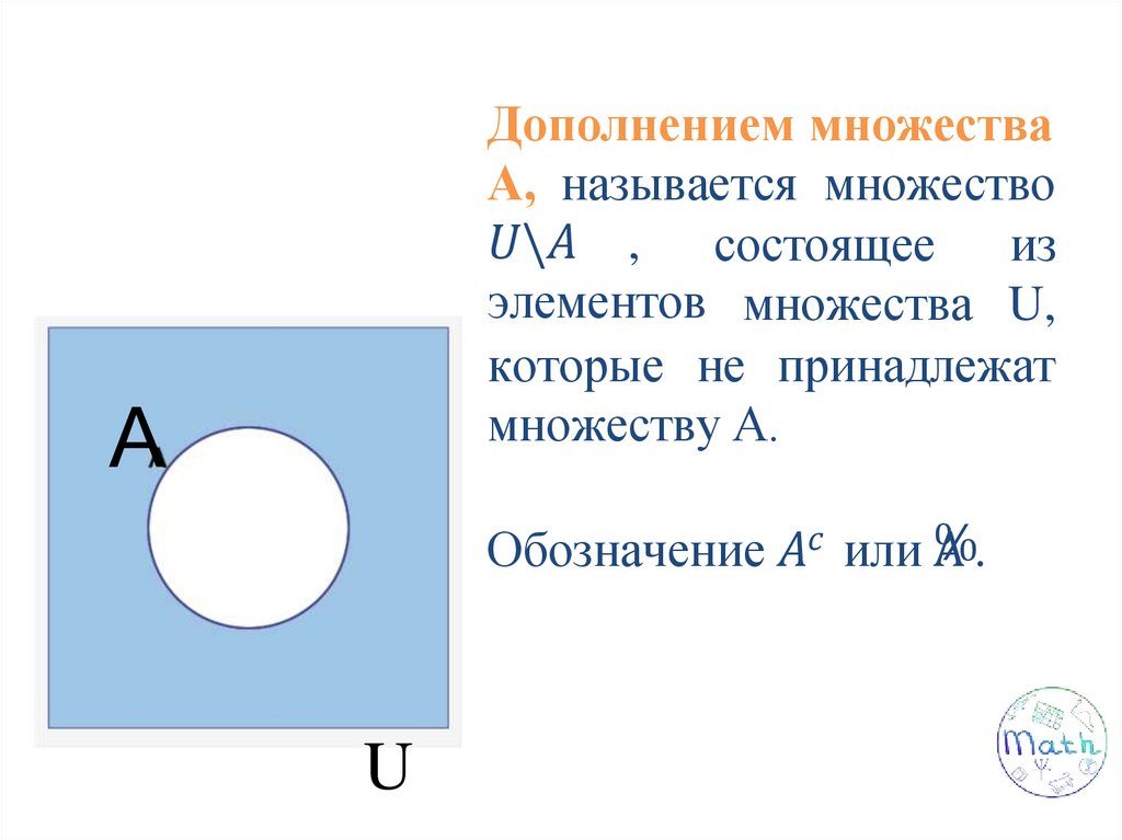 Дополнением множестваА, называется множество