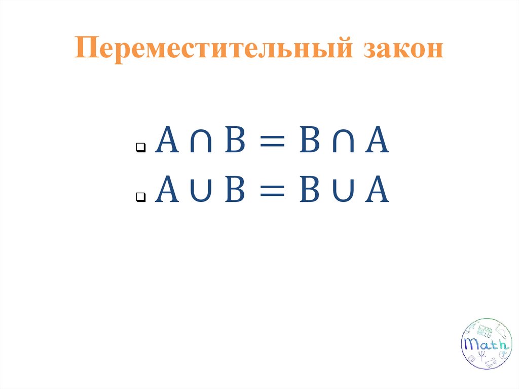 Свойства операций надмножествами: переместительное,