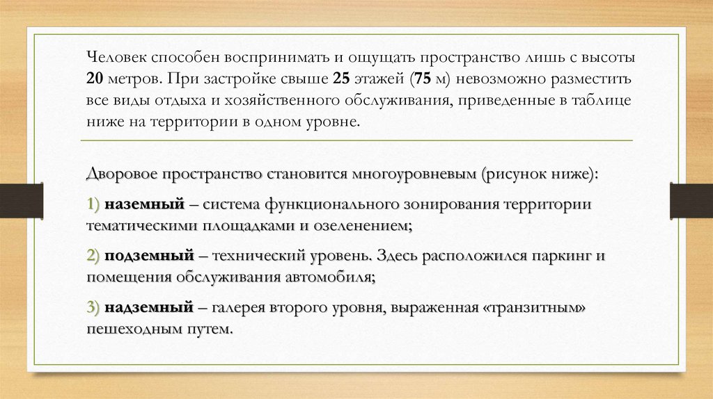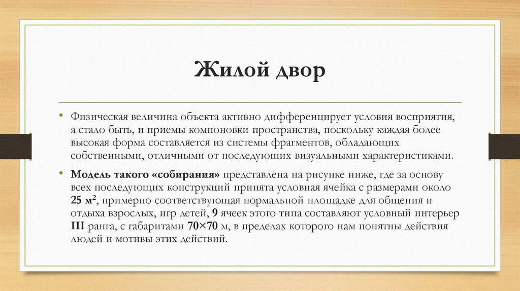 Жилой двор• Физическая величина объекта активно дифференцирует условия восприятия,