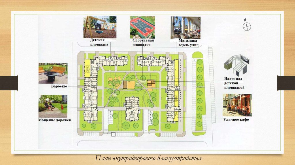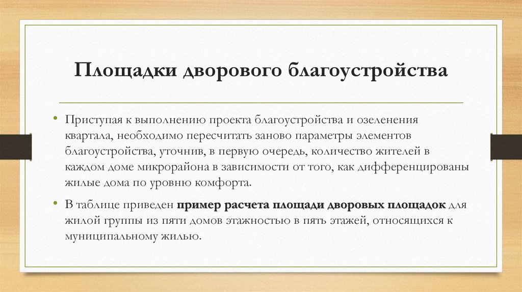 Площадки дворового благоустройства• Приступая к выполнению проекта благоустройства и озеленения