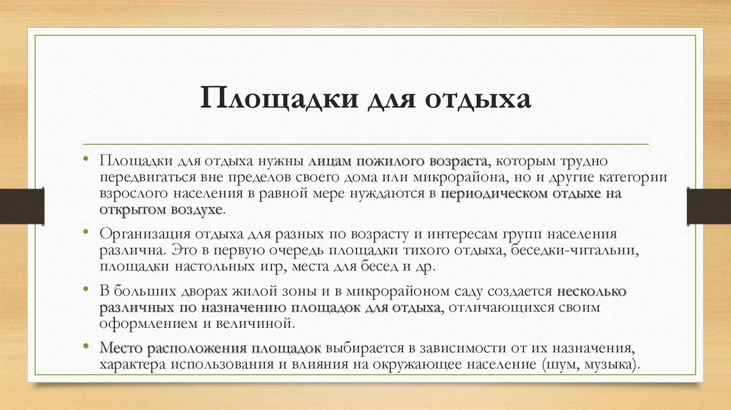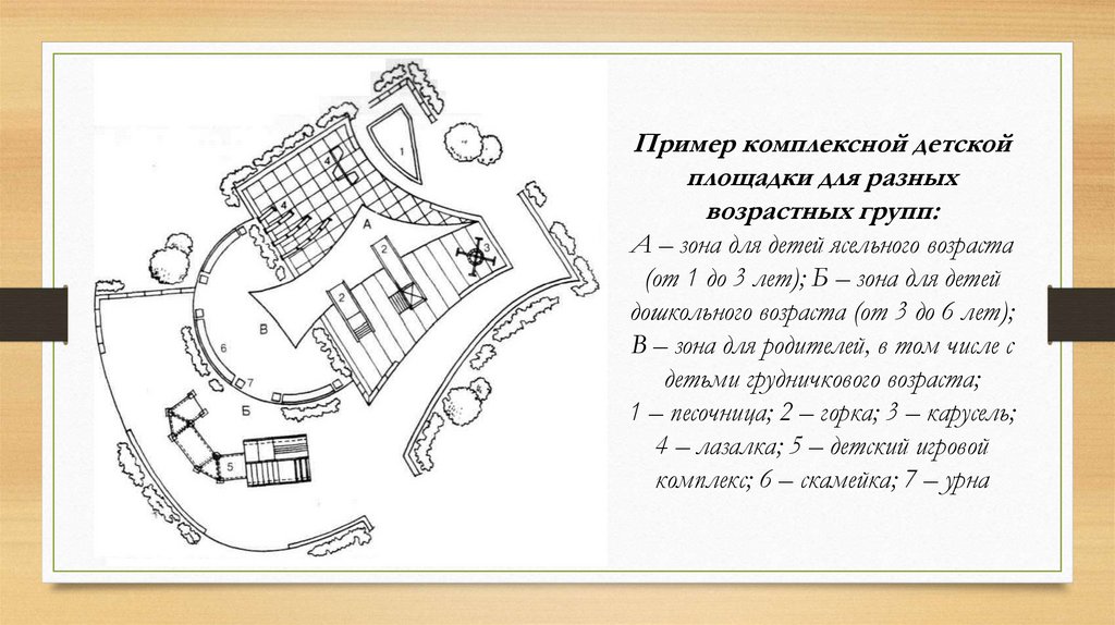 функциональным зонированием и размещением площадок отдыха, игровых,