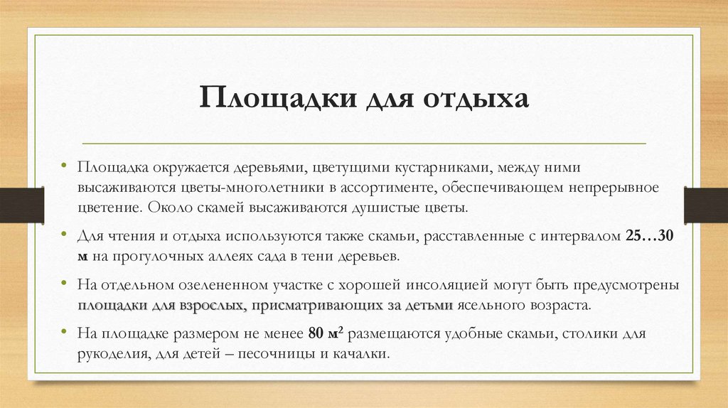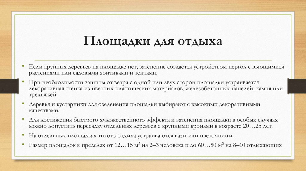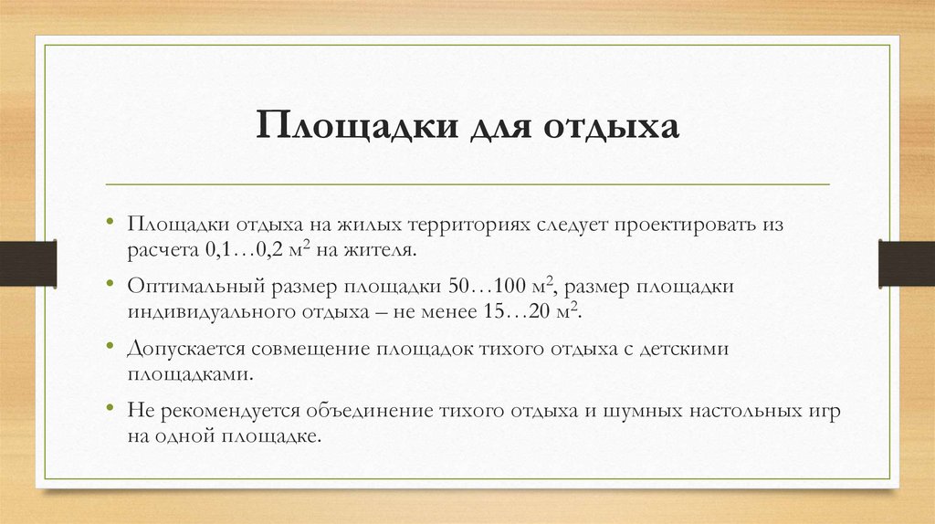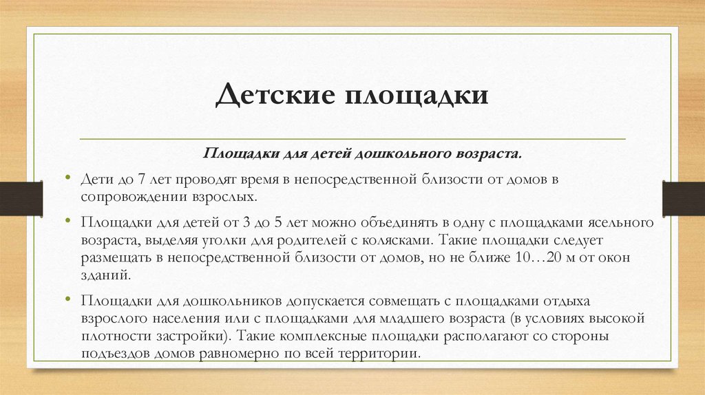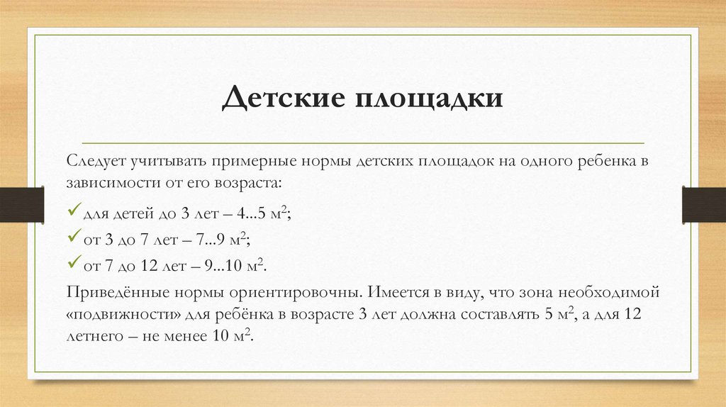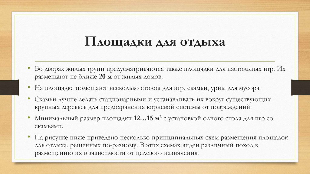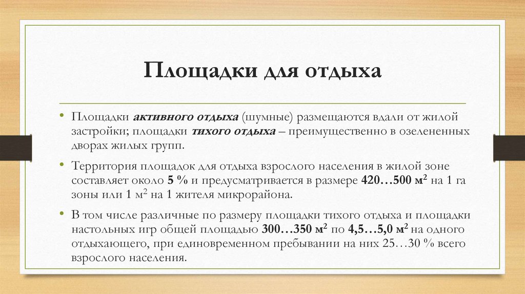 детей и отдыха взрослых следует принимать не менее 20 м, а от площадок для