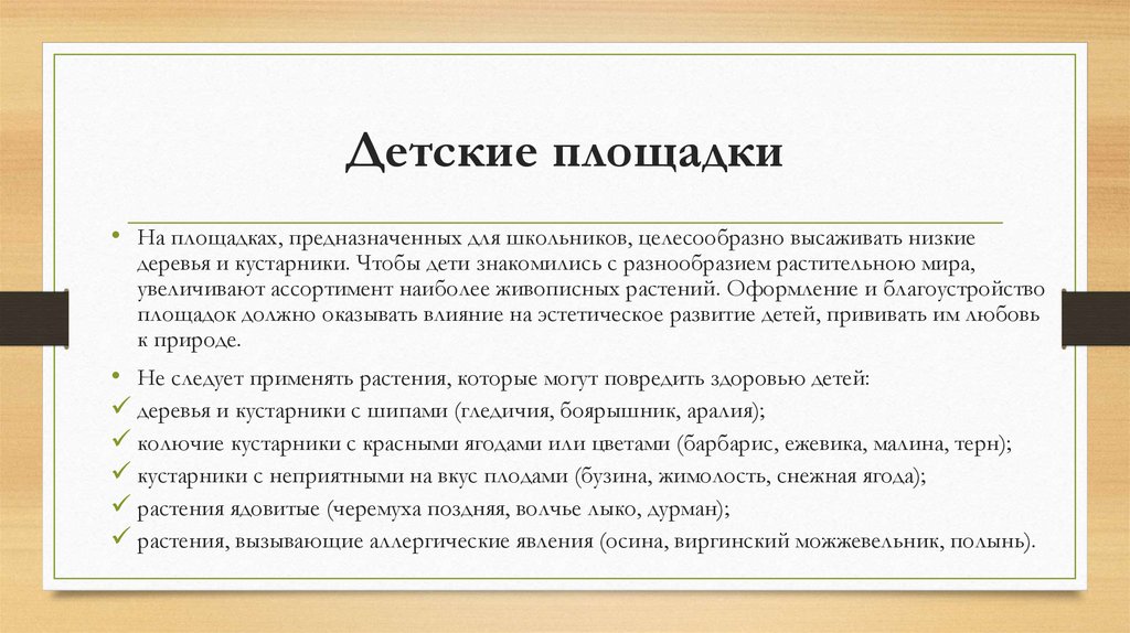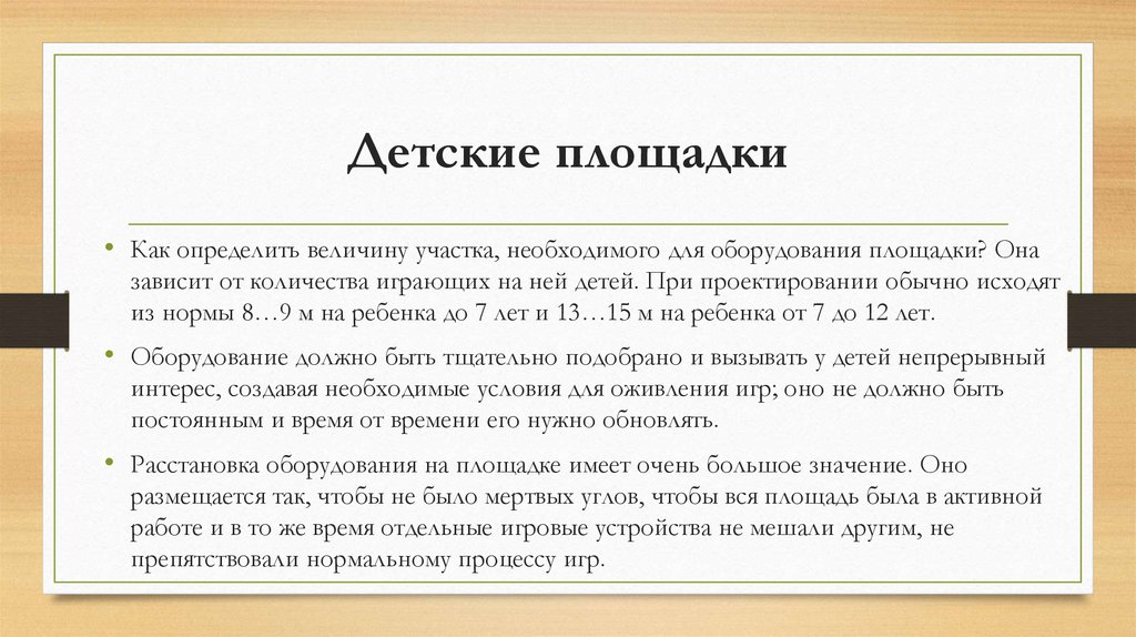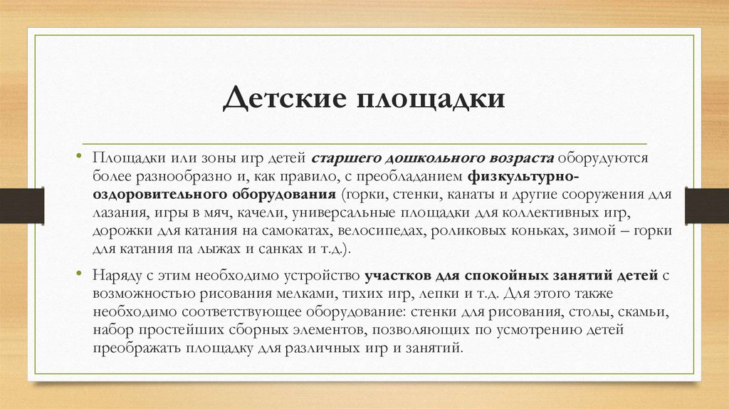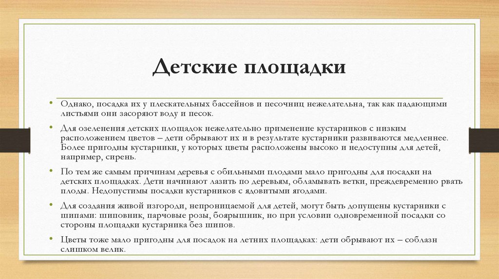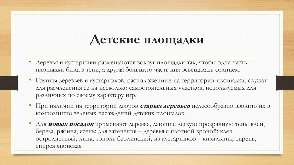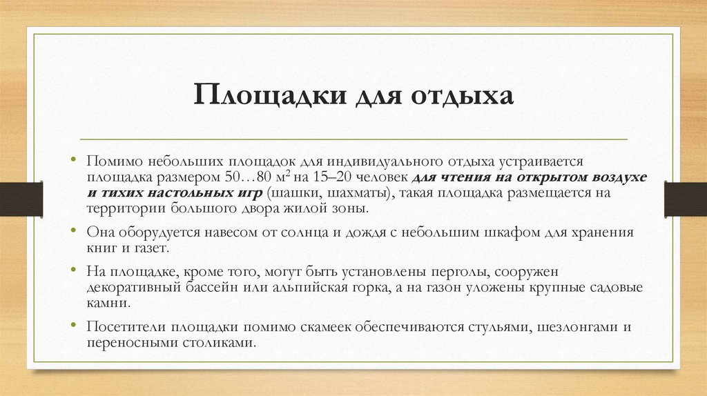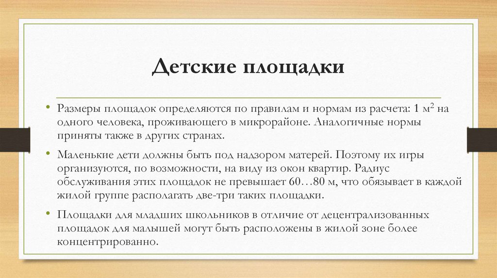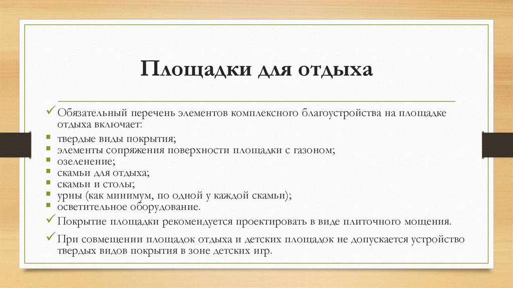 детей и отдыха взрослых следует принимать не менее 20 м, а от площадок для