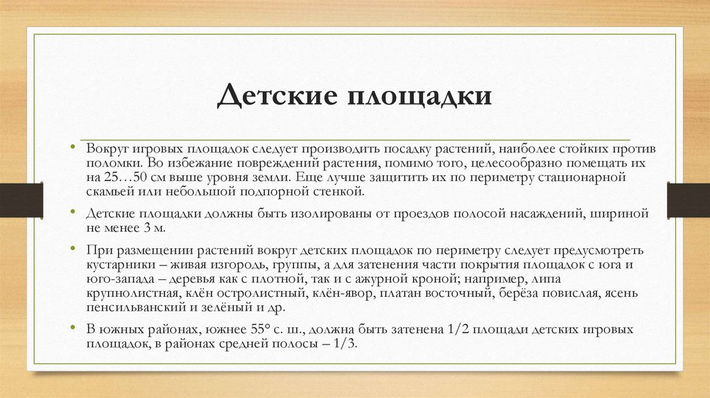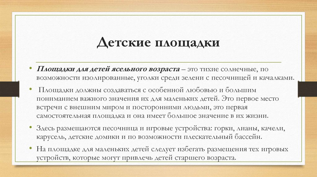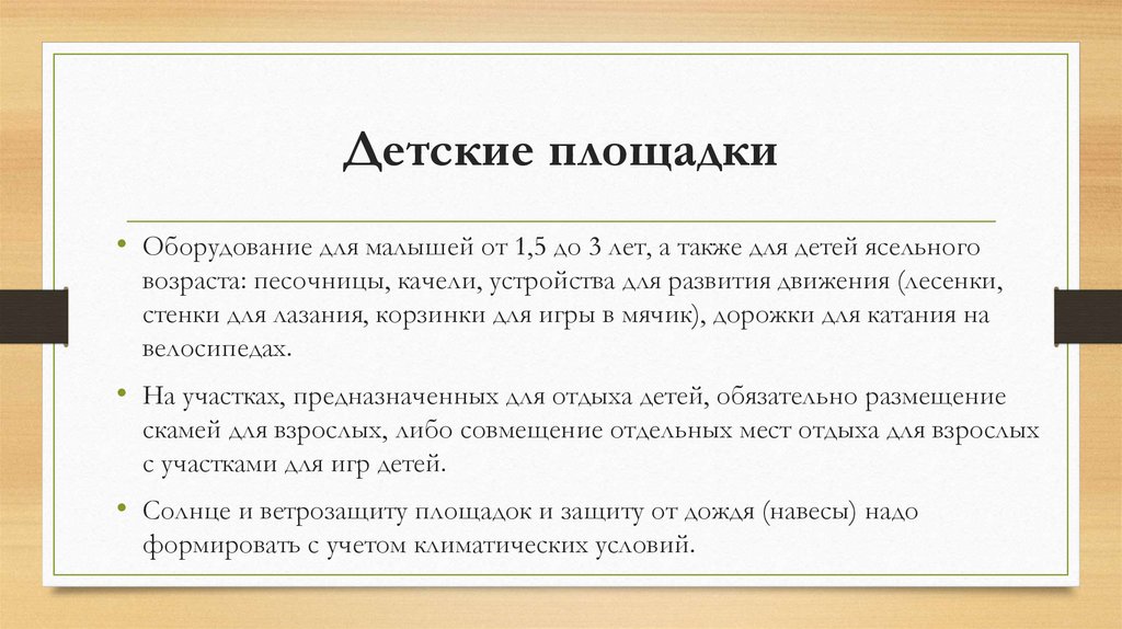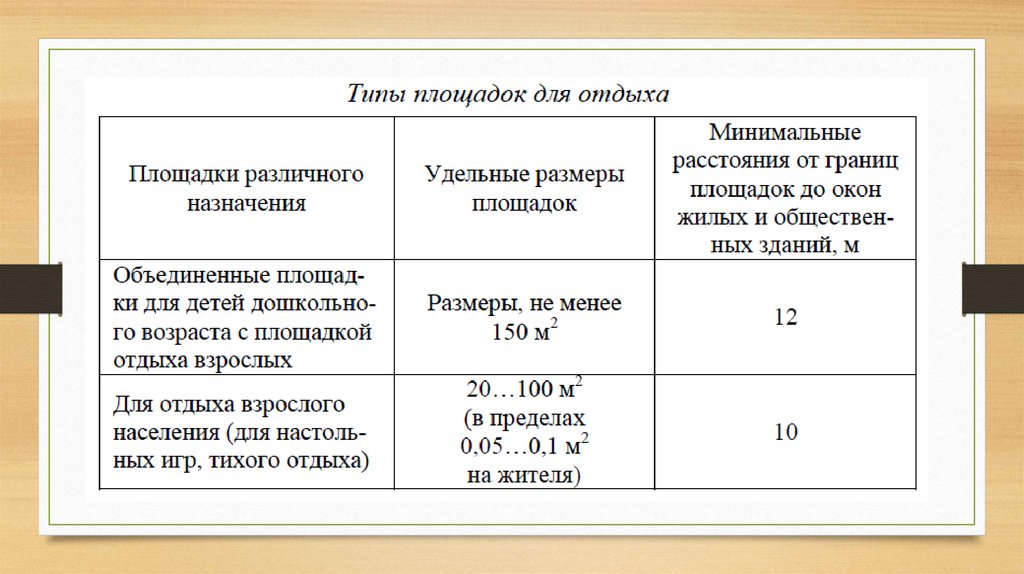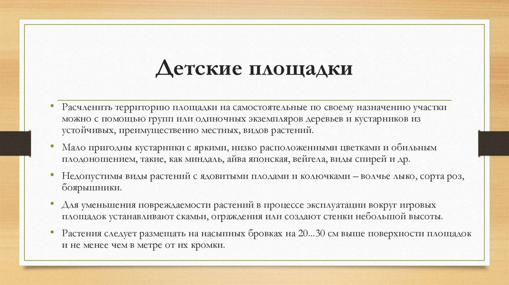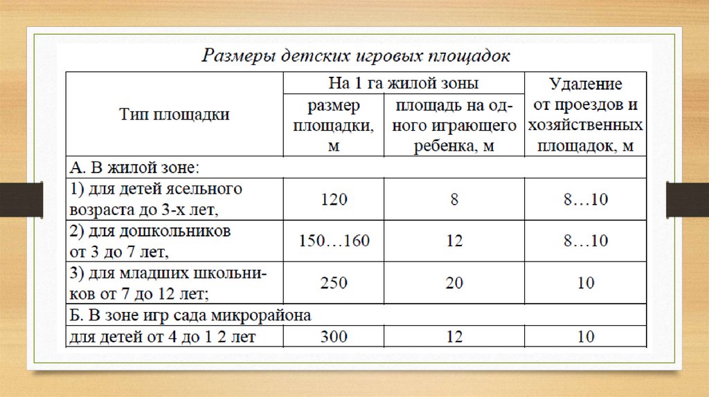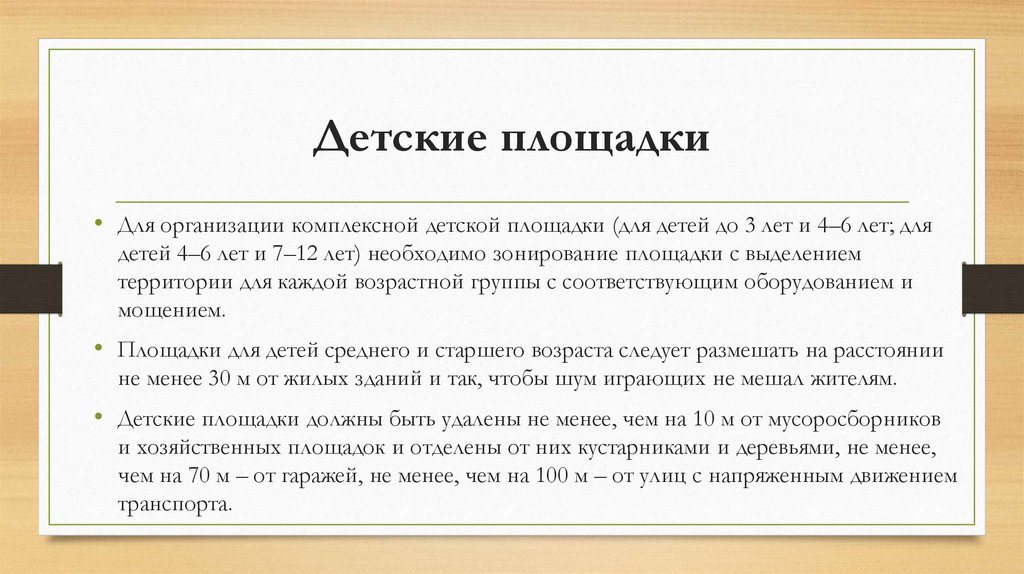 • Подъезды к автостоянкам должны быть изолированы от площадок отдыха и игр