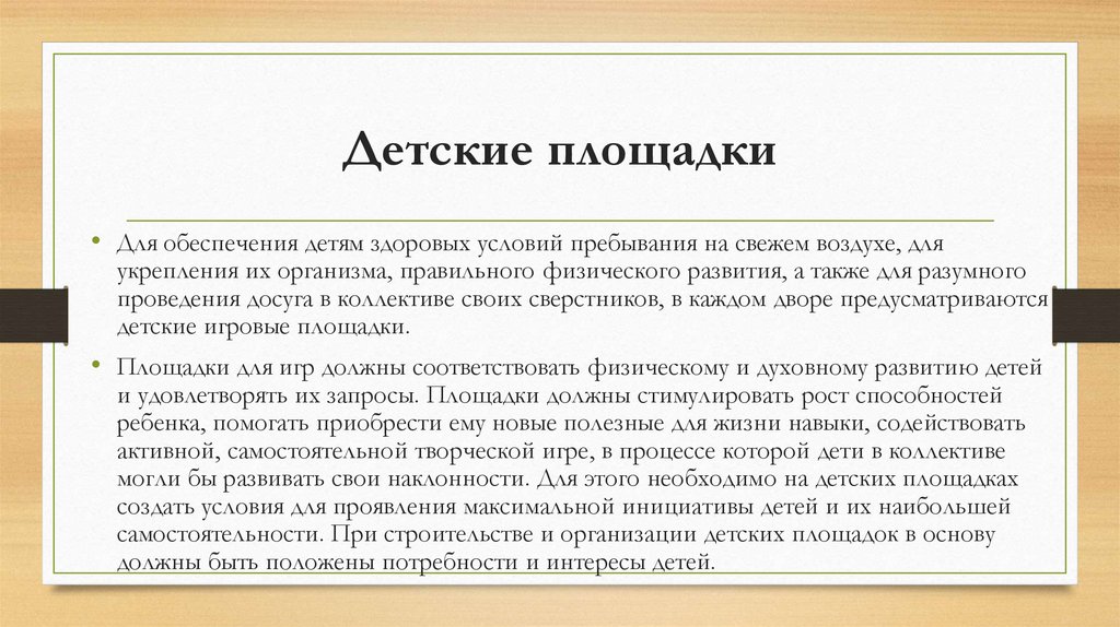 создающих комфорт жизни населения – площадок для игр детей, отдыха