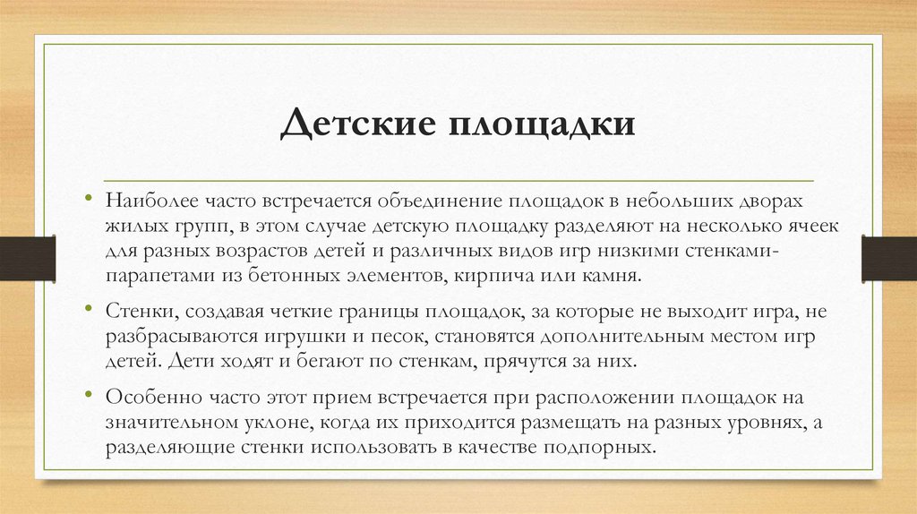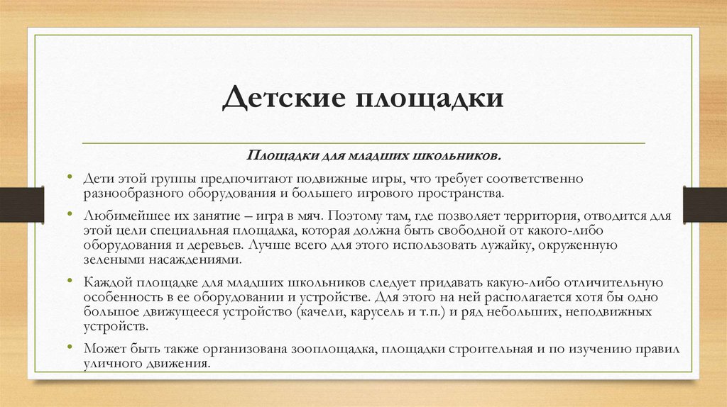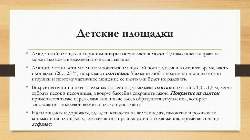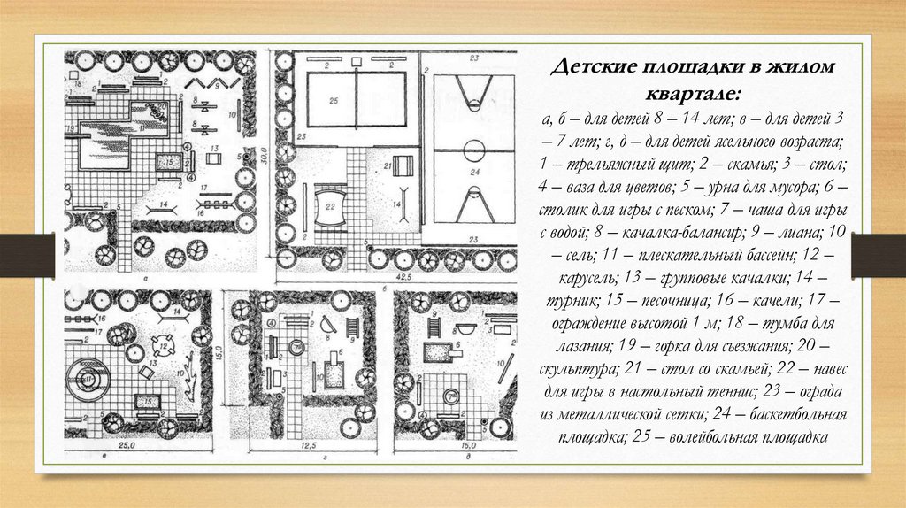 площадок для мусоросборников до физкультурных площадок, площадок для игр