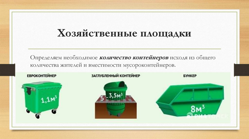 не менее 1,5 м. для заглубленных контейнеров, бункеров, евроконтейнеров;
