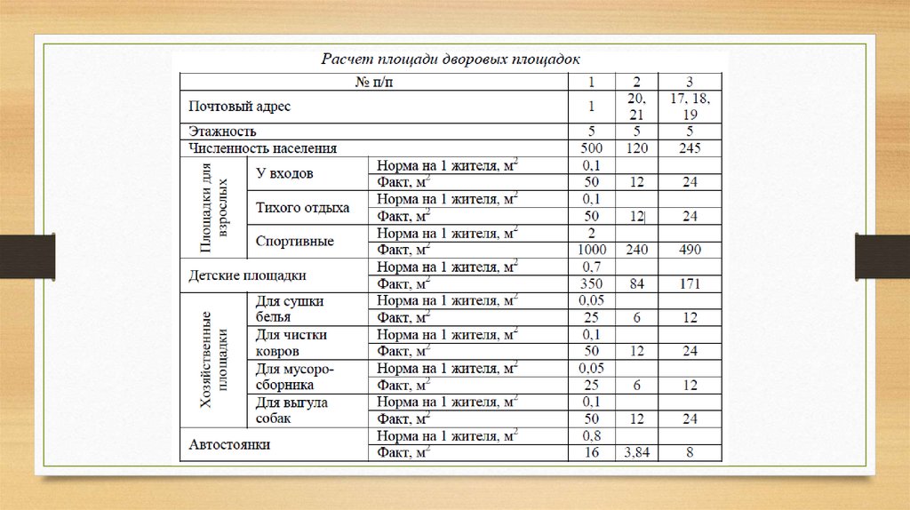элементов. Расчет площади нормируемых элементов дворовой территории